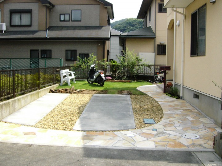暖かみがあり、優しい印象のナチュラルな駐車場が出来ました。