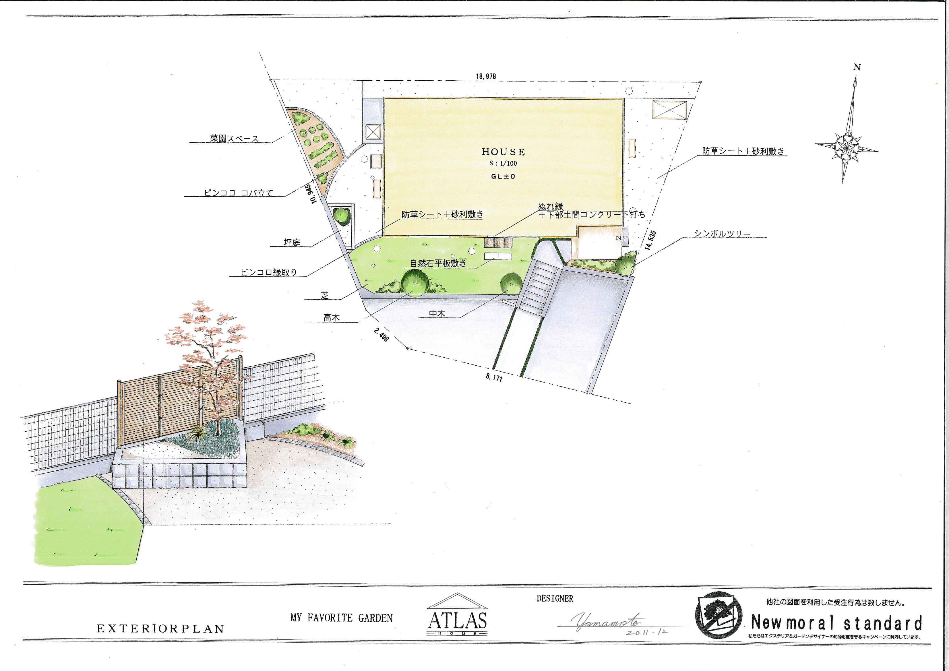 立派なソヨゴの緑が、他の植栽の葉が落ちた季節にも緑の彩りを添えてくれています。