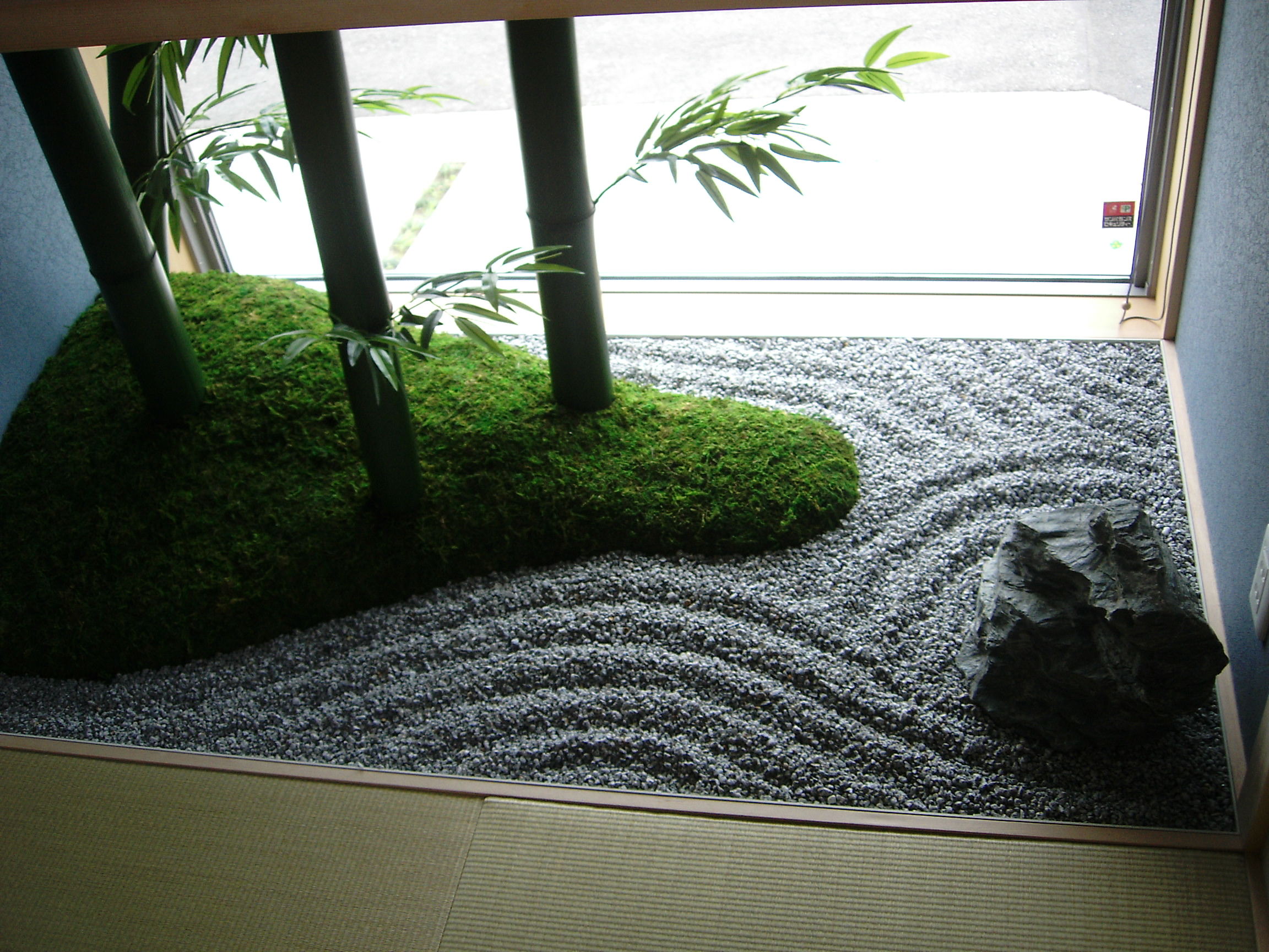水を用いず、砂紋で小さな枯山水のお庭を表現しました。