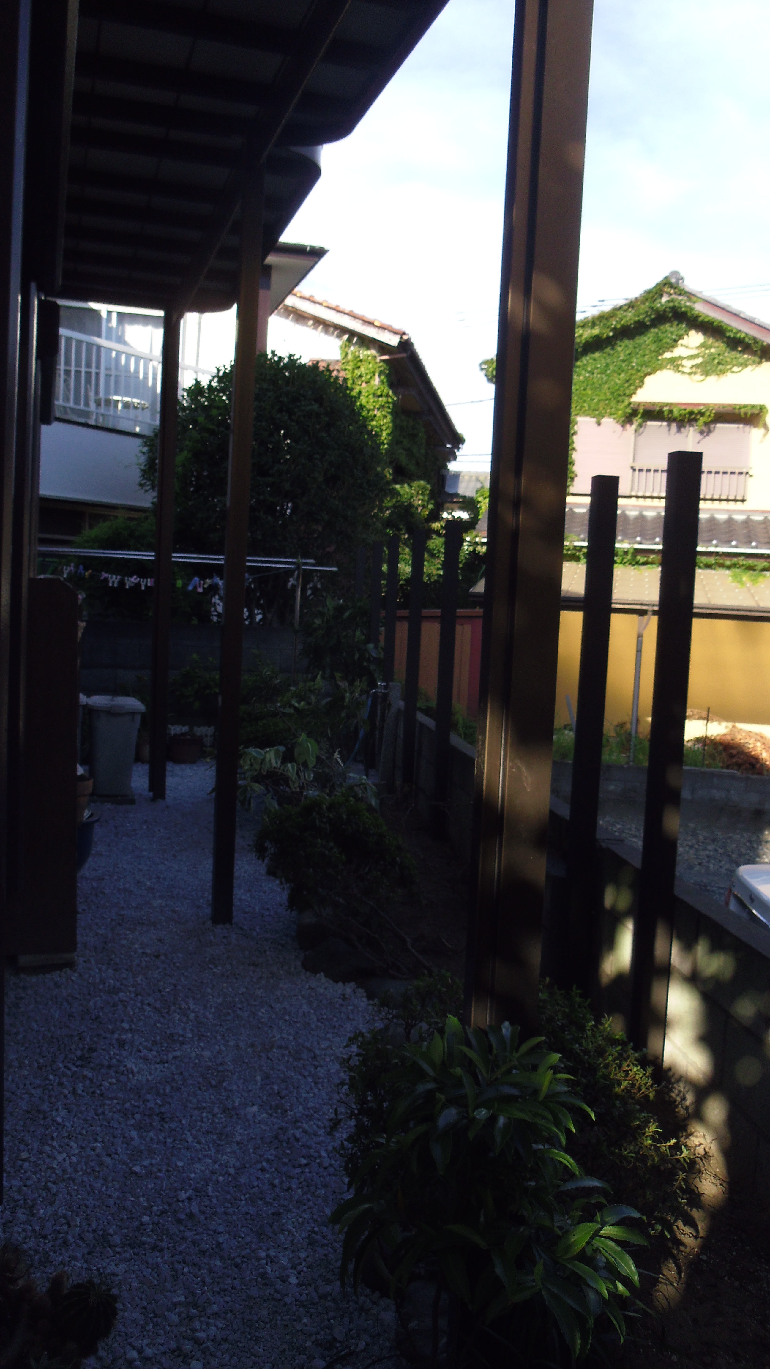 カイズカイブキなどの常緑の植栽が生い茂り、生垣のような自然の目隠しとなっていて、いい部分もありますが、それが少し暗い裏庭にしていました。