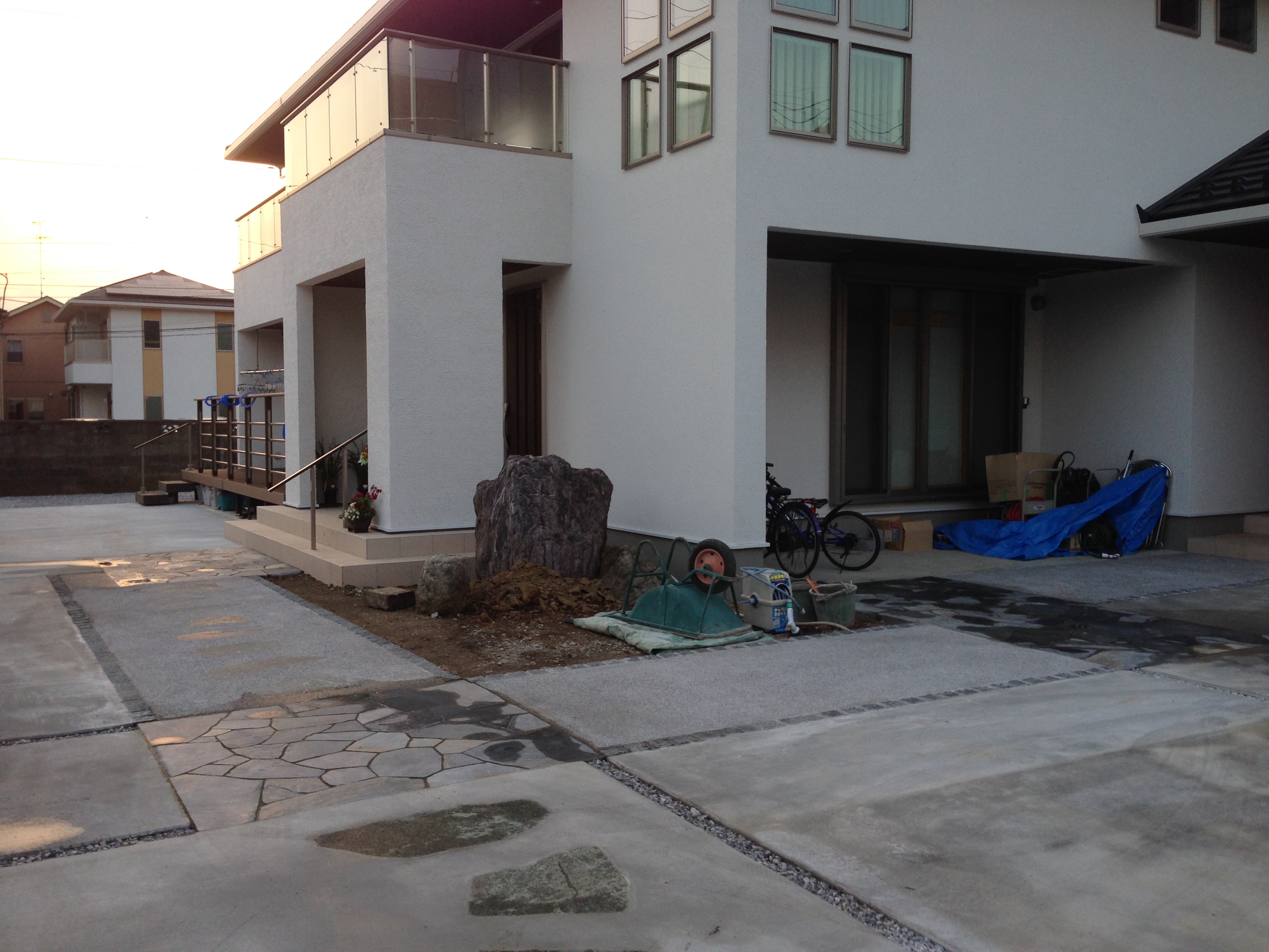 自然石の雰囲気とも良くマッチするカラーで外構に溶け込みました。