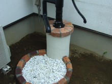 駐車場のタマリュウとピンコロのラインにも遊び心があったり、水栓もかわいらしいデザインの物を選ぶことで、お庭に出る時間が楽しみになりそうな完成をむかえられました。