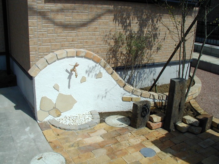 古レンガの笠木が可愛い!2色塗りの立水栓 寒川町