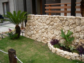 石積み腰壁の近くには花壇を設けてお花を植えるスペースを作成。