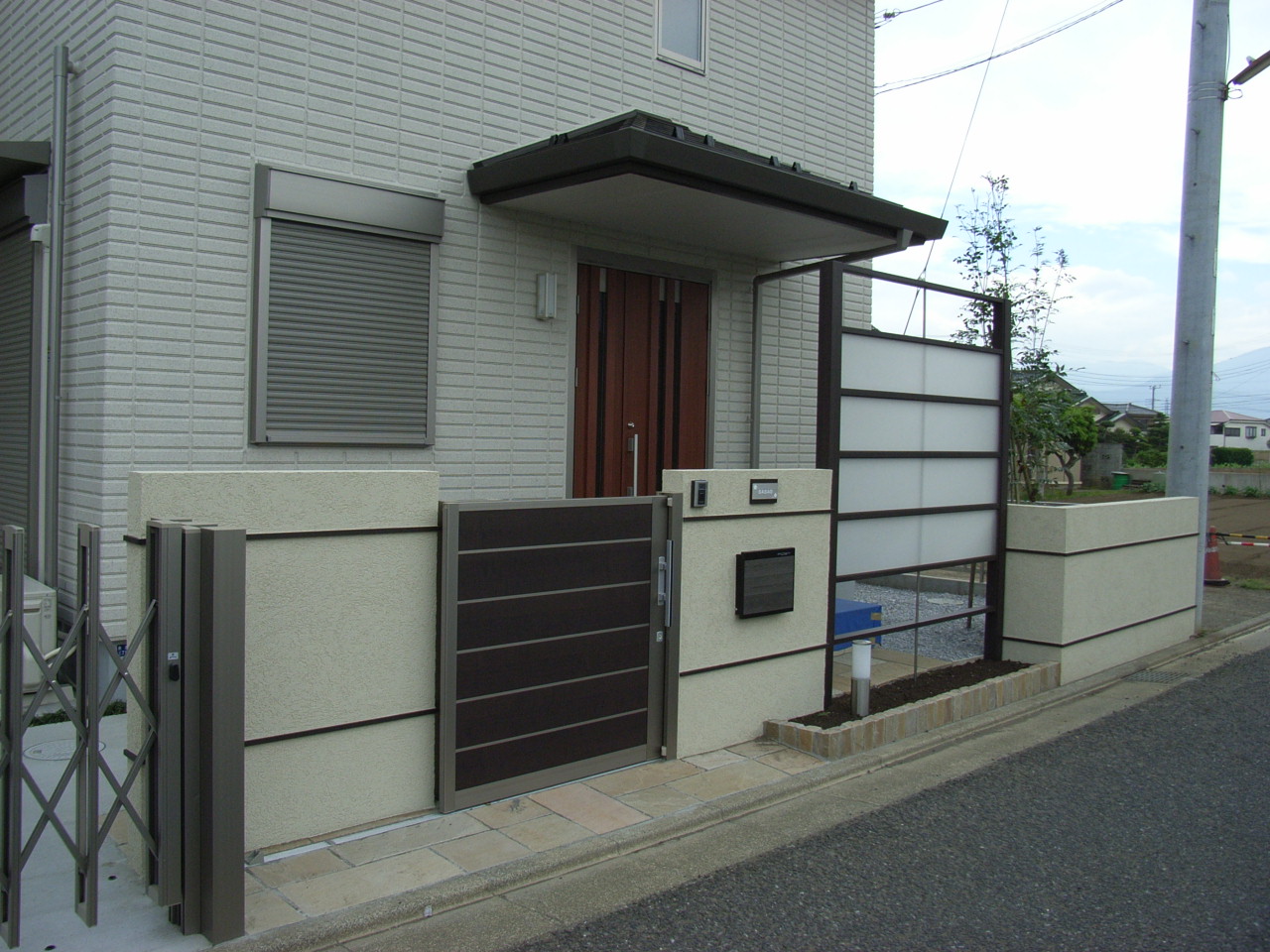 TOEXのスライド門扉、アウタースライドを使った門まわり。門袖の隣の目隠しフェンスはTOEXのGスクリーンです。Gスクリーンは自由な位置にパネルを付けられますので、お家の状況に合わせた高さで目隠ししてくれますよ!